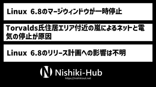 3行まとめ Linus Torvalds氏がLinux 6.8のマージウィンドウを一時的に停止していることを表明しています。