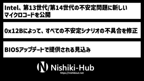3行まとめ Intelは、第13世代と第14世代の125W CPUとi7以上の65W CPUで発生していた不安定問題に対する最後のマイクロコードをリリースしました。