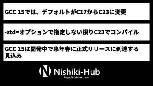 3行まとめ GCCの次期メジャーバージョンであるGCC 15では、デフォルトでC23に移行します。