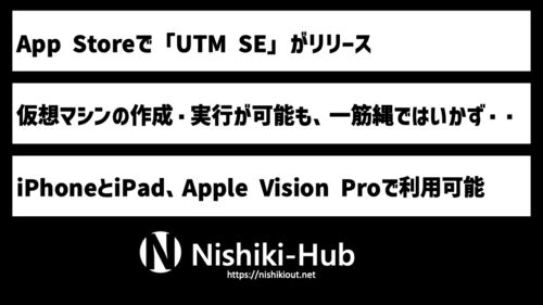 3行まとめ App Storeにて、仮想マシンを作成し実行することができる「UTM SE」がリリースされました。