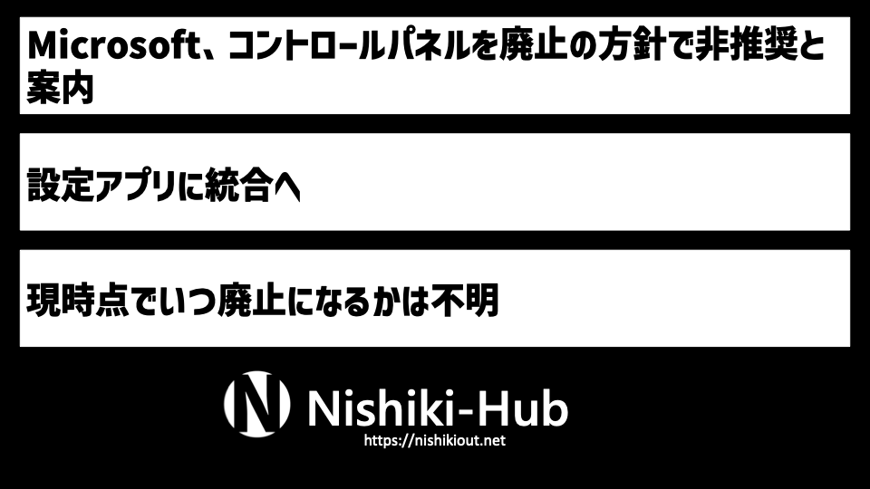 現時点でいつ廃止になるのかはアナウンスされていませんが、近い将来コントロールパネルが廃止されることになるようです。
