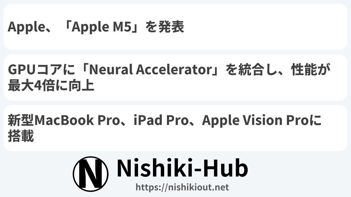 Appleは、新型のSoC「Apple M5」を発表しました。