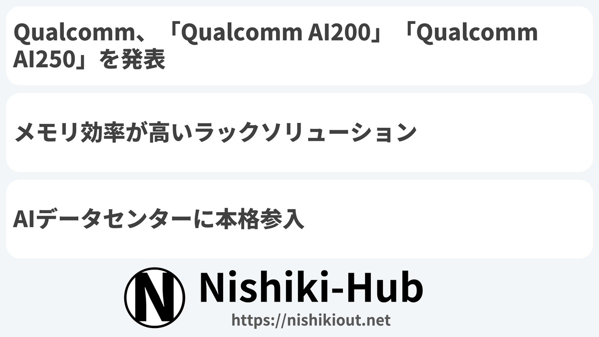 主にモバイル向けの印象が強いQualcommは、実はデータセンター向けにAIアクセラレータを投入しています。その新製品「Qualcomm AI200」と「Qualcomm AI250」が発表されました。